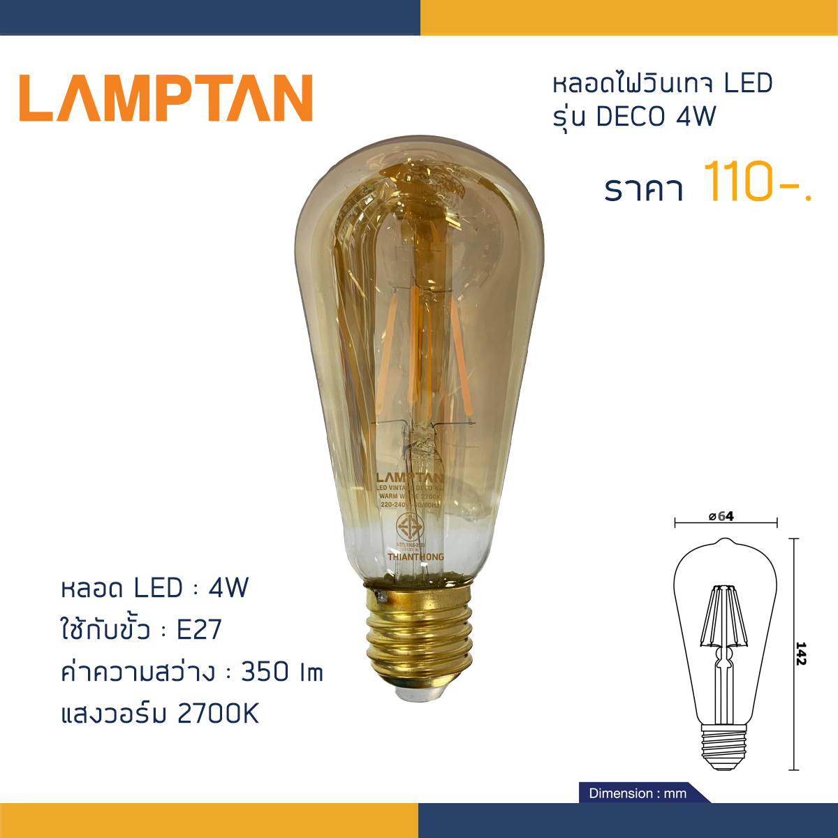 • หลอดไฟวินเทจ LAMPTAN รุ่น DECO 4W