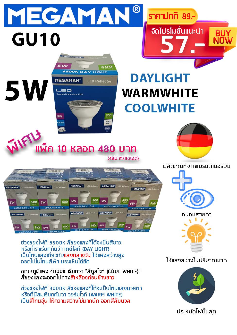 Be the first to review “หลอดไฟ Megaman GU10 5W”