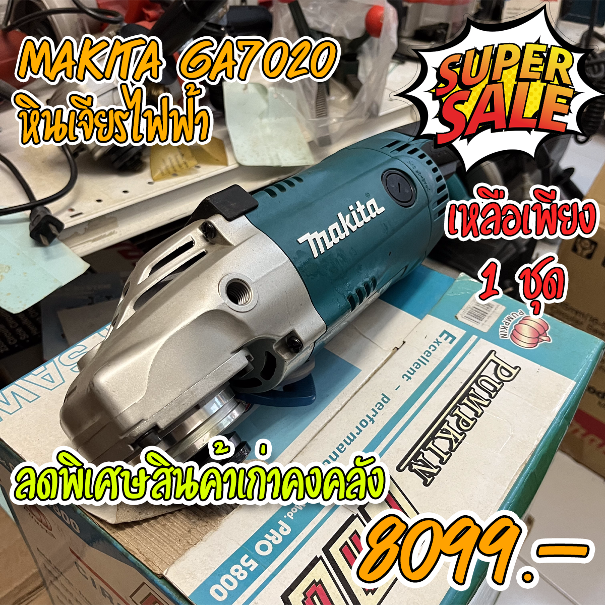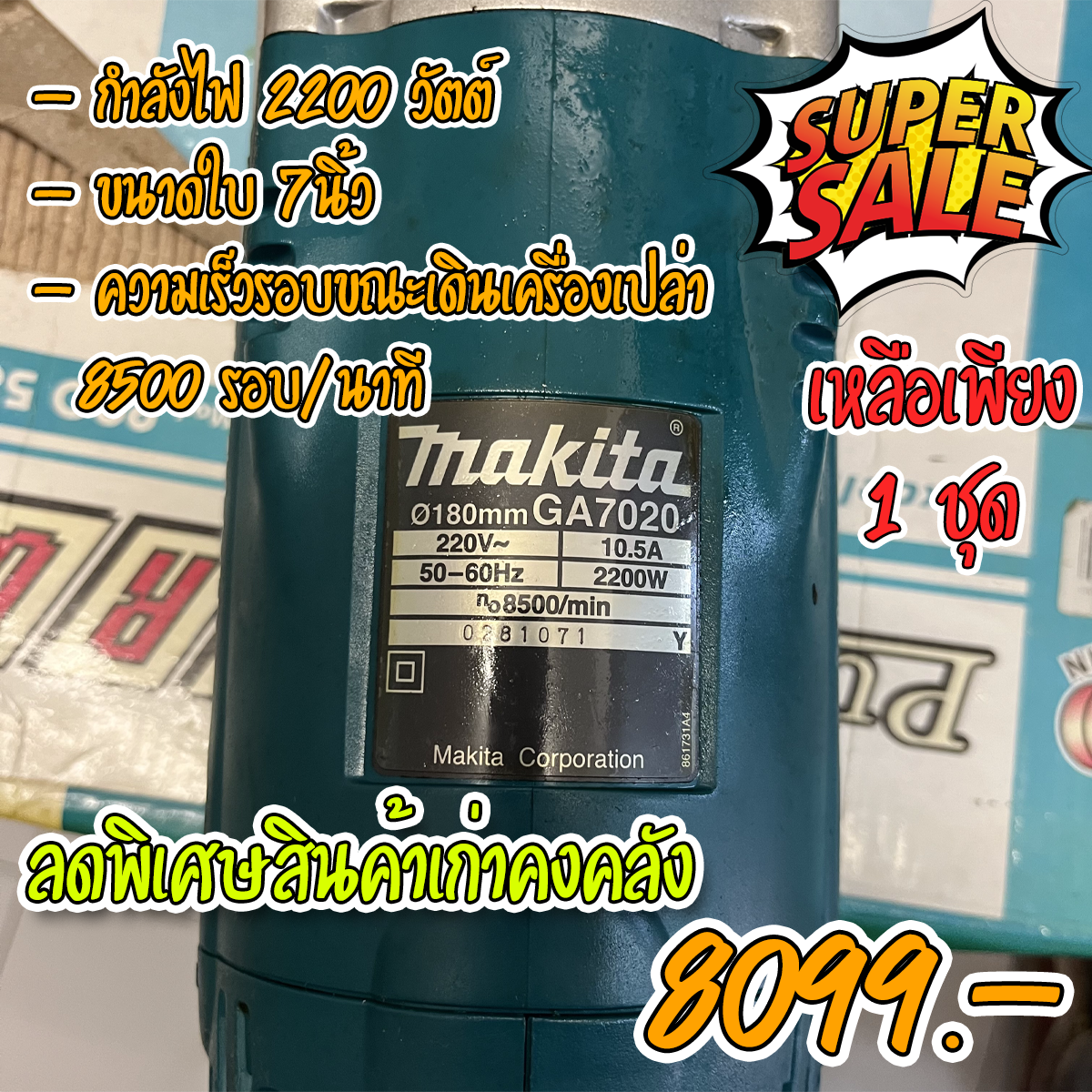 เครื่องเจียร 7นิ้ว (180mm.) MAKITA GA7020 (2200w.) สวิทช์ท้าย • มีความทนทาน และมีระบบระบายความร้อนคงที่ • โครงสร้างถูกออกแบบให้ป้องกันฝุ่นผง เข้าสู่ตัวเครื่อง • ตัวเครื่องถูกออกแบบให้มีความทนทานด้วยการใช้เฟืองดอกจอก • ตัวเสื้อเฟืองสามารถหมุนปรับตำแหน่งได้ทุกๆ 90 องศา • ใช้กับถ่าน CB-204 • กำลังไฟฟ้าที่ใช้ 2,200W • ความเร็วรอบตัวเปล่า (rpm) 8,500 • น้ำหนักสุทธิ 5.5 กก.(12.2 ปอนด์) • คุณลักษณะ ฉนวน • ขนาดเครื่อง (ม.ม.) 473 X 200 X 140 มม. • (ยาว x กว้าง x สูง) (18-5/8″ X 7-7/8″ X 5-1/2″) • เส้นผ่าศูนย์กลางแผ่นเจีย 180 มม.(7″)
