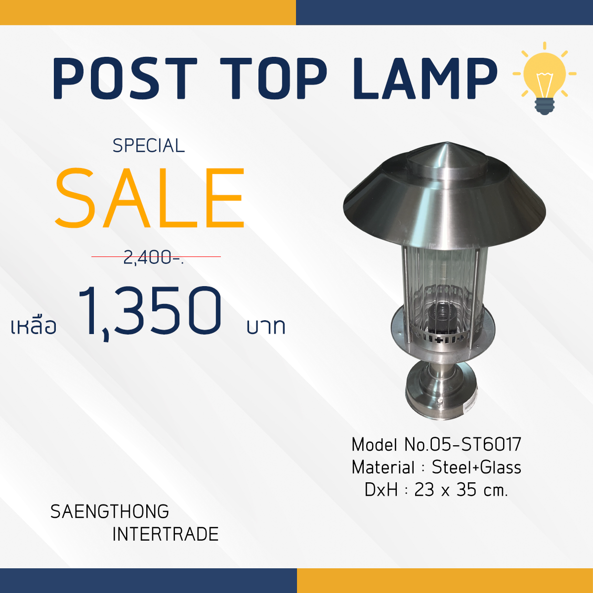 Model : 05-ST6017 Material : Steel+Glass DxH : 23×35 cm.