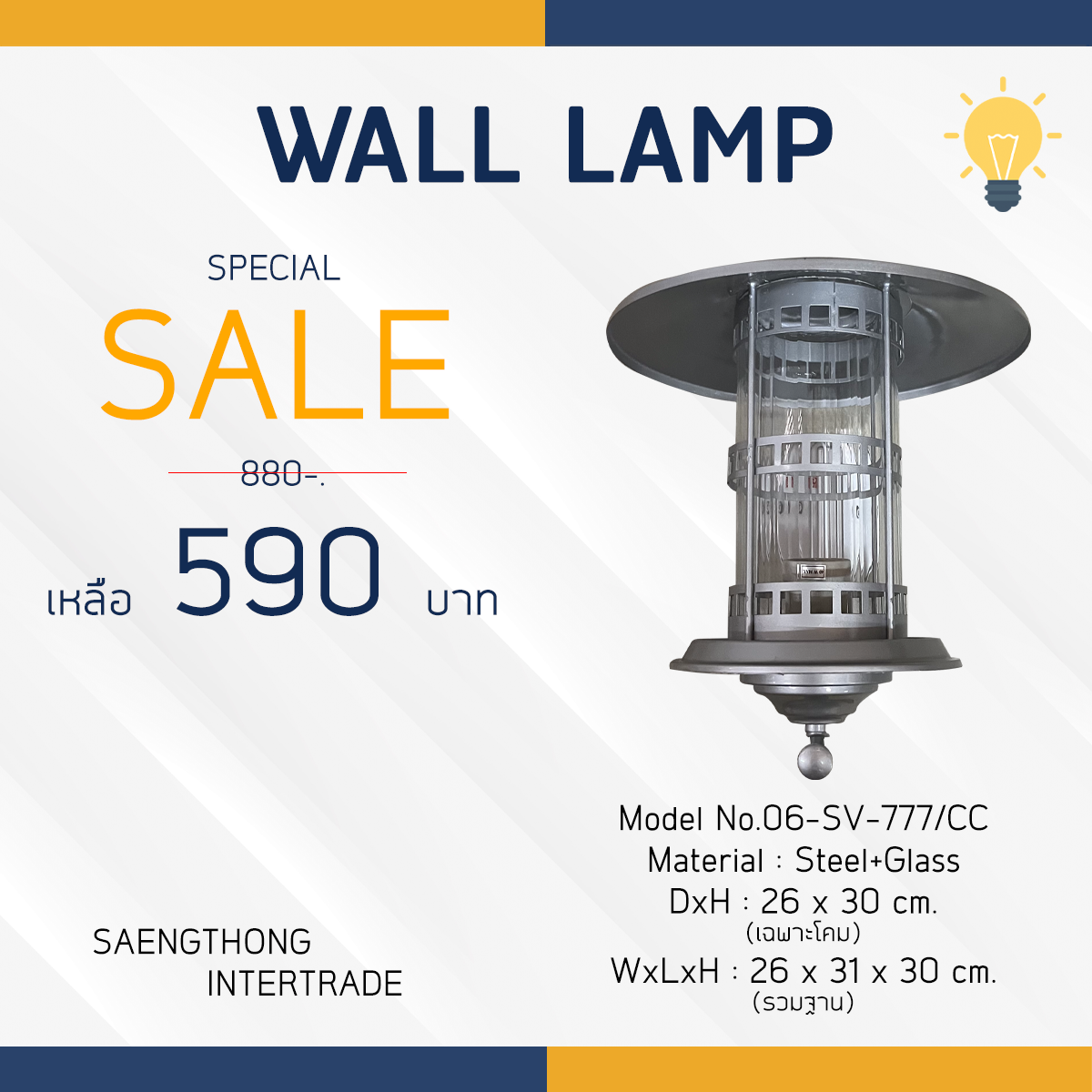 DxH : 26×30 cm. ตัวโคม