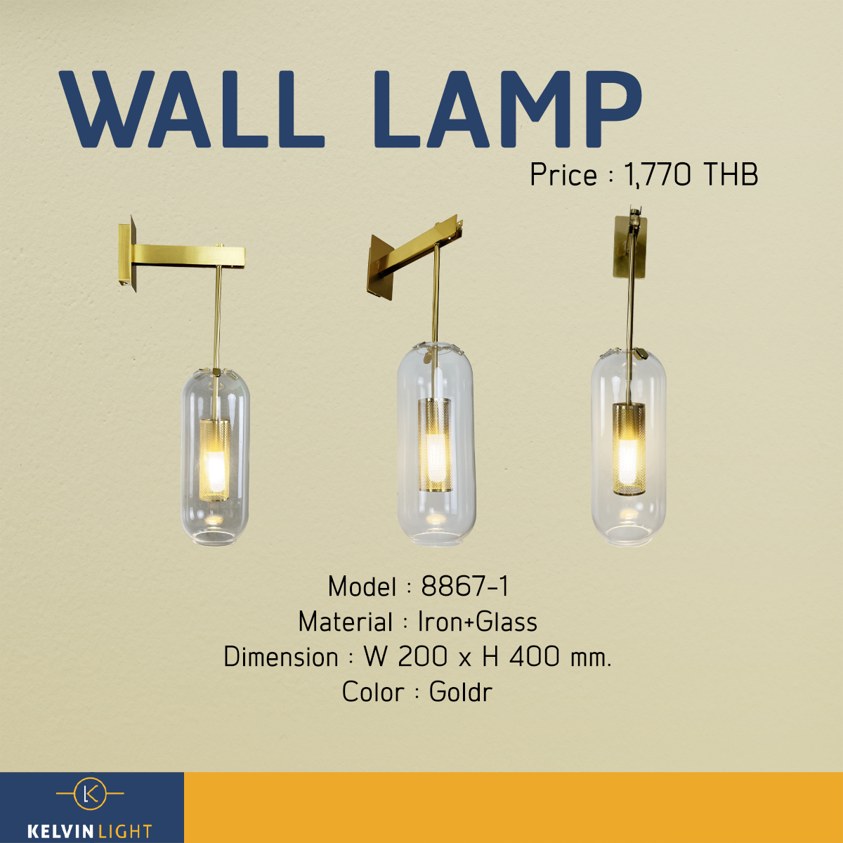 Be the first to review “โคมไฟติดผนัง สีทองครอบแก้วใส สไตล์โมเดิร์น Luxury No.8867-1”