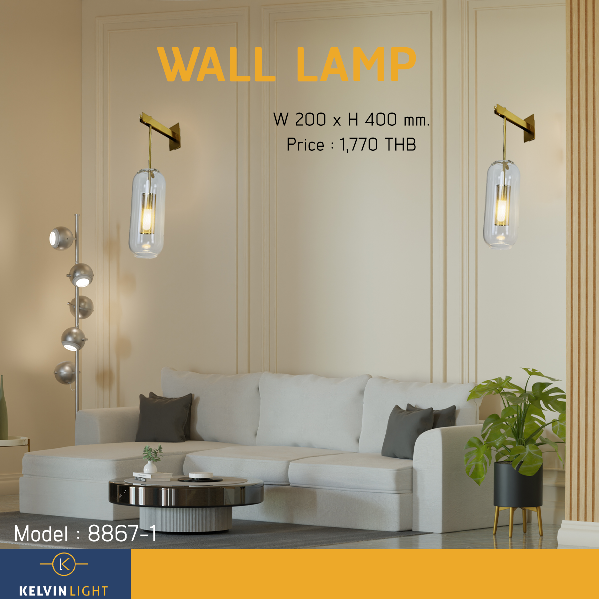 โคมไฟติดผนัง สีทองครอบแก้วใส สไตล์โมเดิร์น Luxury No.8867-1
