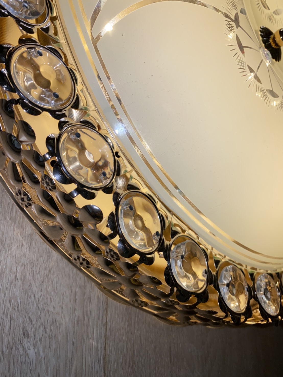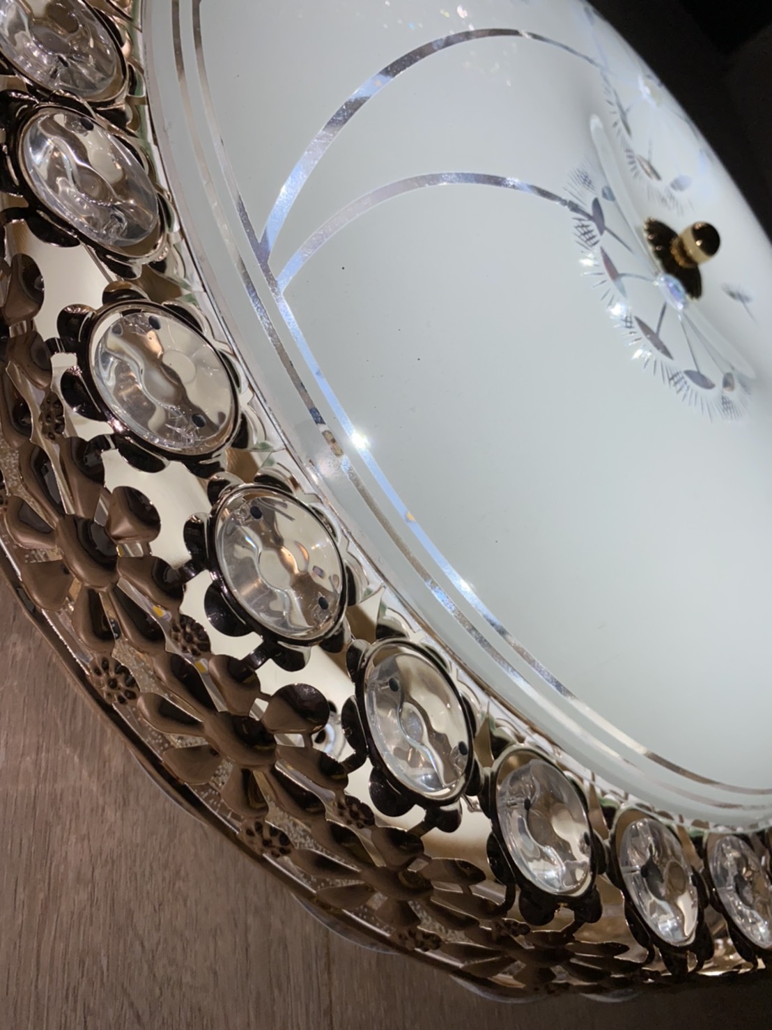ขอบสแตนเลสเงินเงาประดับคริสตัลและอะคริลิค