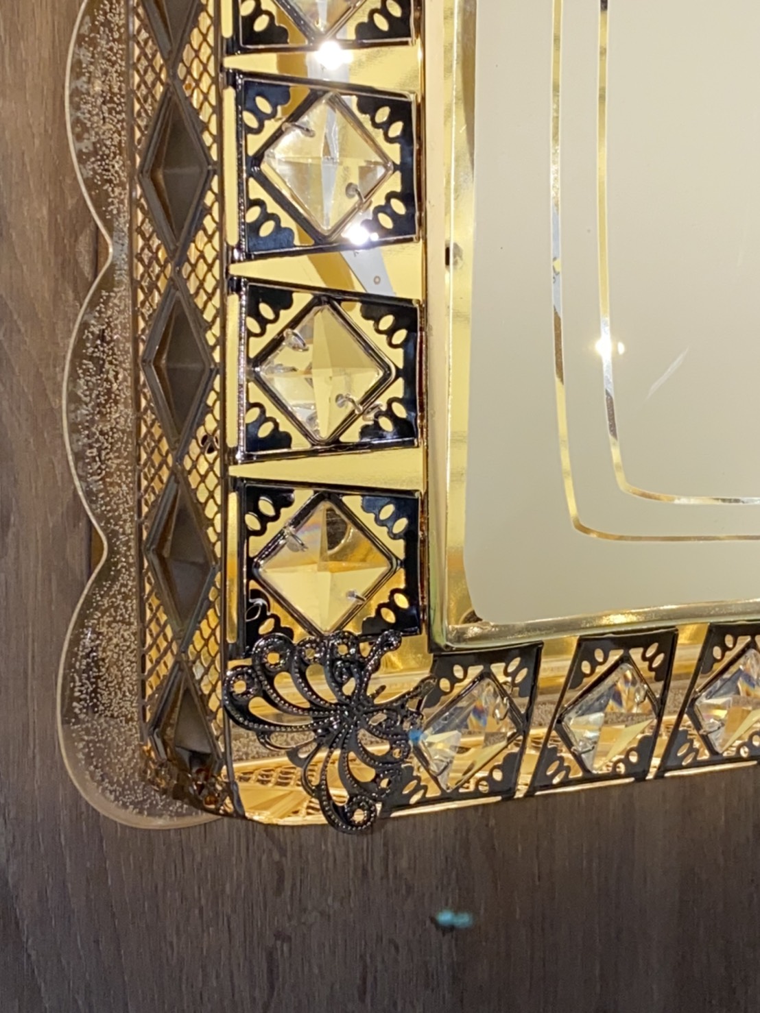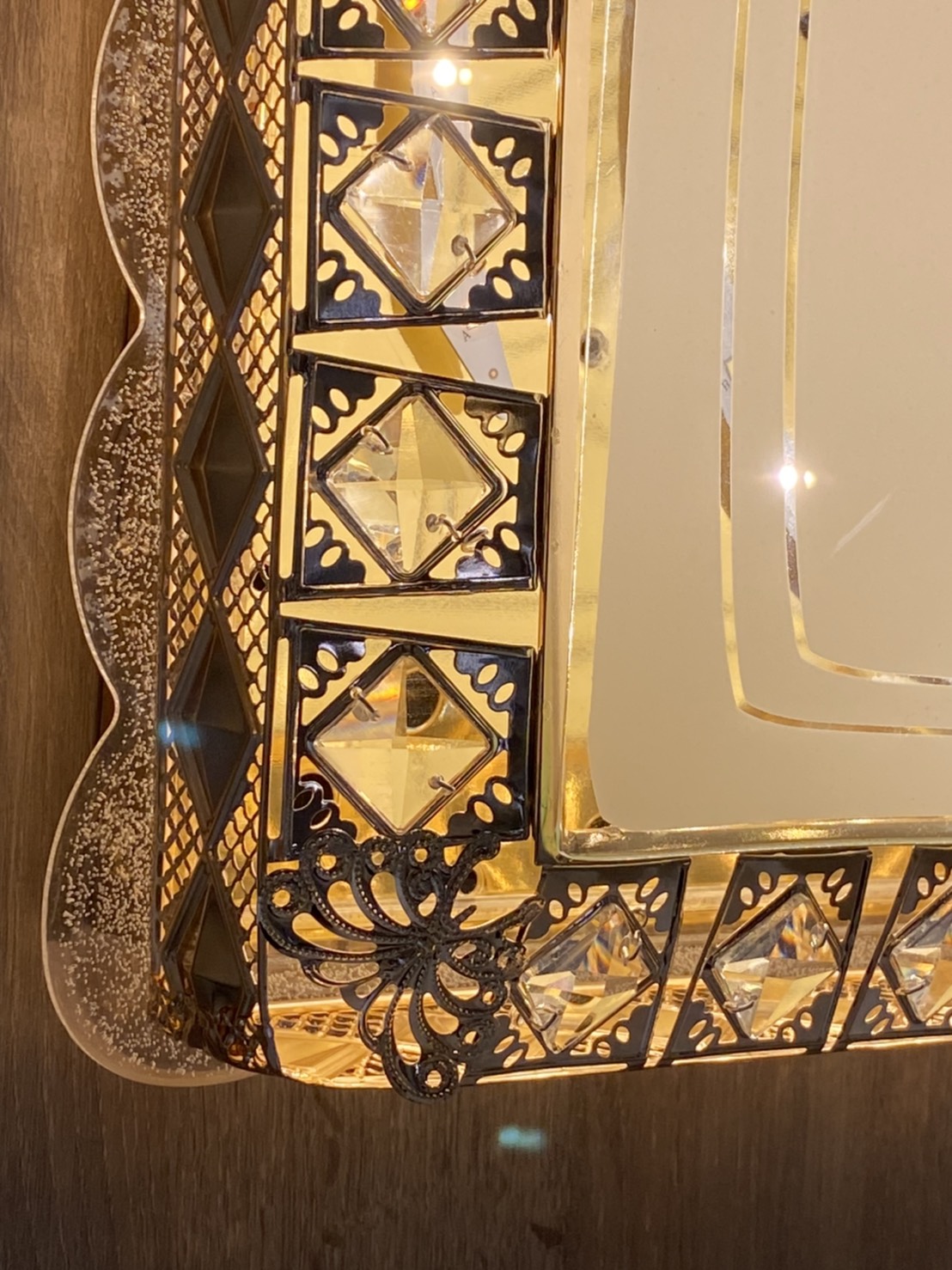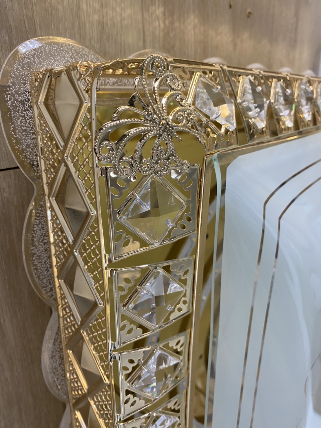 ขอบสแตนเลสเงินเงาประดับคริสตัลและอะคริลิค