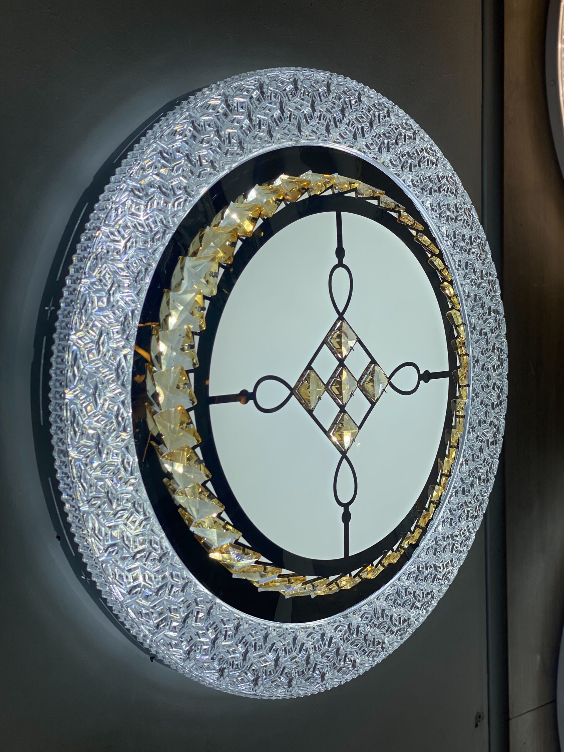 ขอบสแตนเลสเงินเงาประดับคริสตัลและอะคริลิค